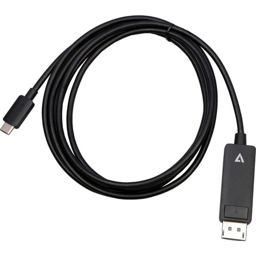 V7 V7USBCDP14-2M 2.01 m DisplayPort/USB-C A/V Cable - Cable for Audio/Video Device, Monitor, Desktop Computer, Notebook, Tablet, Mobile Phone - First End: USB Type C - Second End: DisplayPort Digital Audio/Video - 32.4 Gbit/s - Supports up to7680 x 4320 - Shielding - 34 AWG - Black
