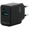 MOBILIS 30 W AC Adapter - Universal Adapter - 1 USB - 1 USB Type-C - For Smartphone, Tablet PC - Black